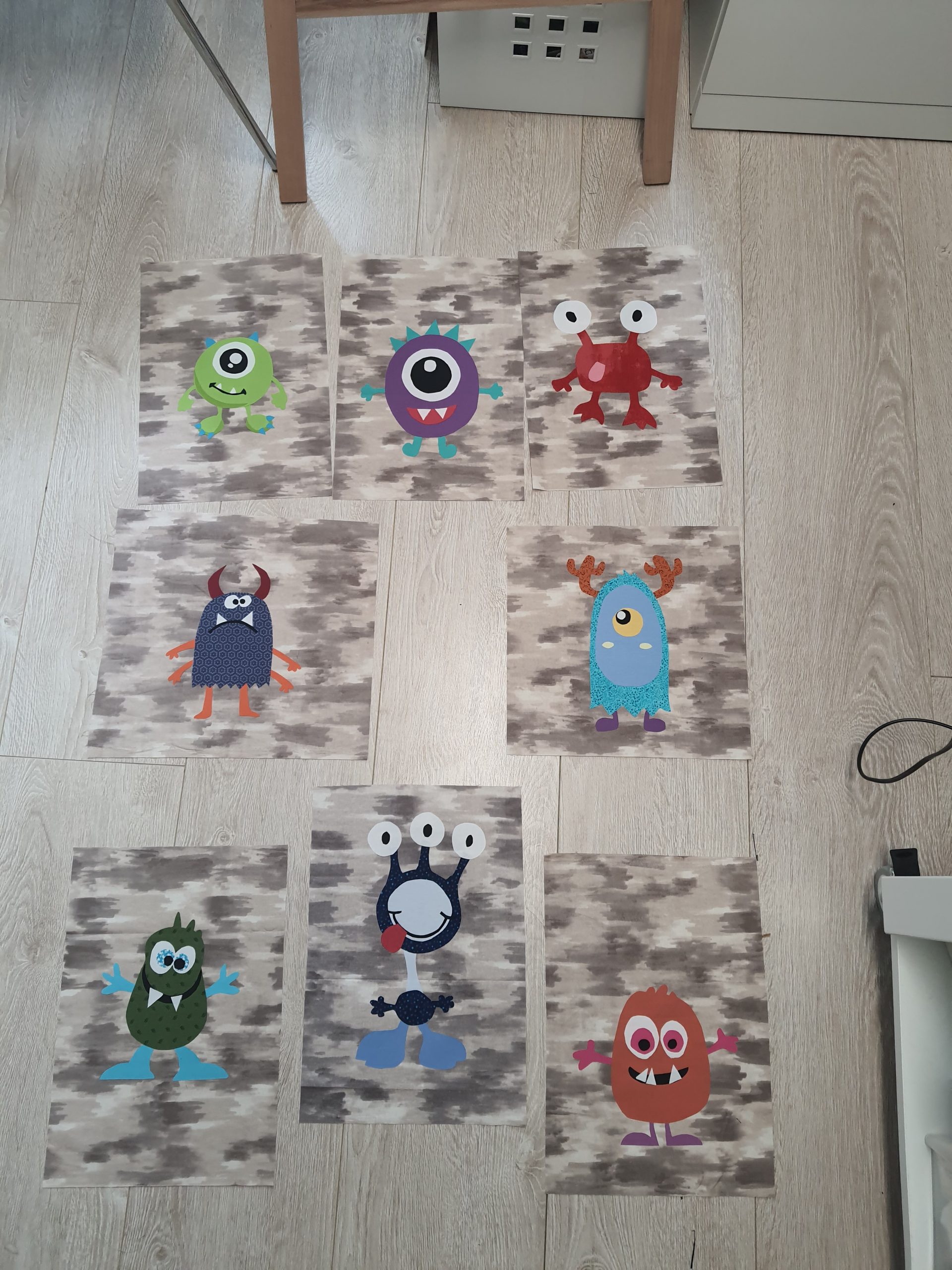 Það var svo komin júní þegar ég var búin að setja öll skrímslin á bakgrunnin.