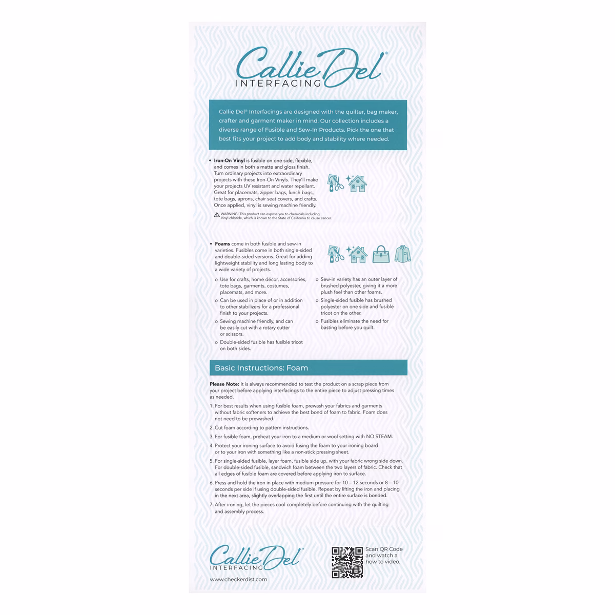 This midweight non-woven sew-in foam from Callie Del will give your projects lightweight stability and long-lasting body. Great for use in crafts, home décor, accessories, tote bags, garments, costumes, and more, the flexible foam sandwiched between two layers of brushed polyester is easy to handle and sew. Use in place of or in addition to other stabilizers for a professional finish to your projects. 100% Brushed Polyester Outer Shell. 100% Polyurethane Inner Core.