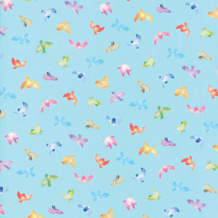 Efnið er 110 sm breitt. – Smágert fuglamunstur