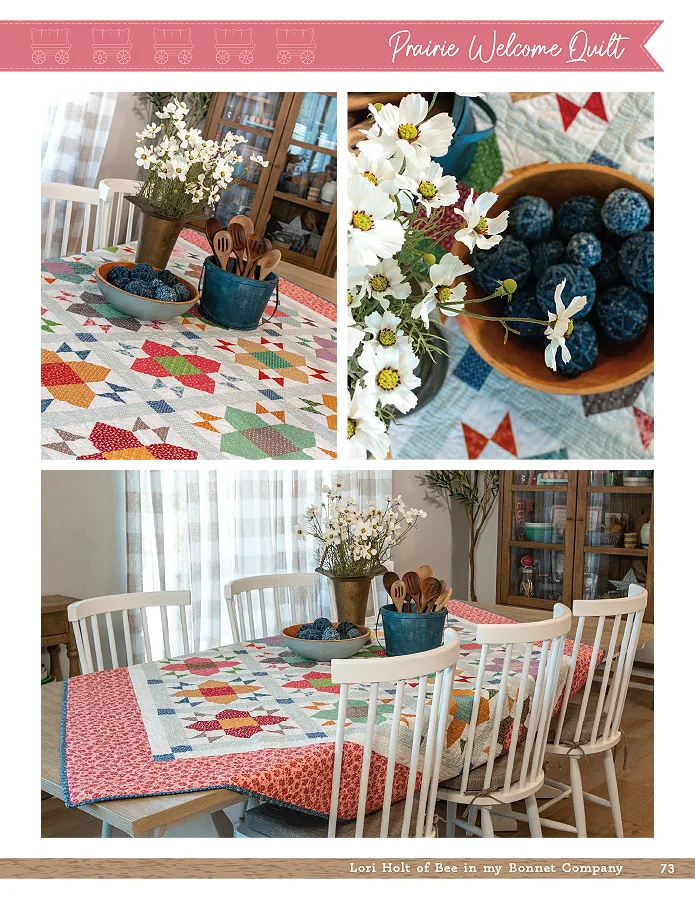 Prairie Home eftir Lori Holt er fersk og heillandi túlkun á teppum úr liðinni tíð — tímum vagnalesta, handsaums og samverustunda við bútasaum. Bókin er skipt niður eftir árstíðum og inniheldur yfir 30 verkefni: teppi, löbera, borðskreytingar og púða.