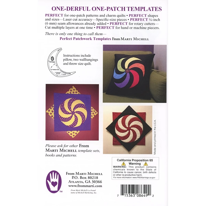 Create stunning circular blocks with the One-Derful One-Patch Templates - Swirlygig by Marti Michell! This versatile template allows you to craft 11-1/2” circular blocks using two appliqué methods. Included instructions ensure precise cutting for beautiful results.