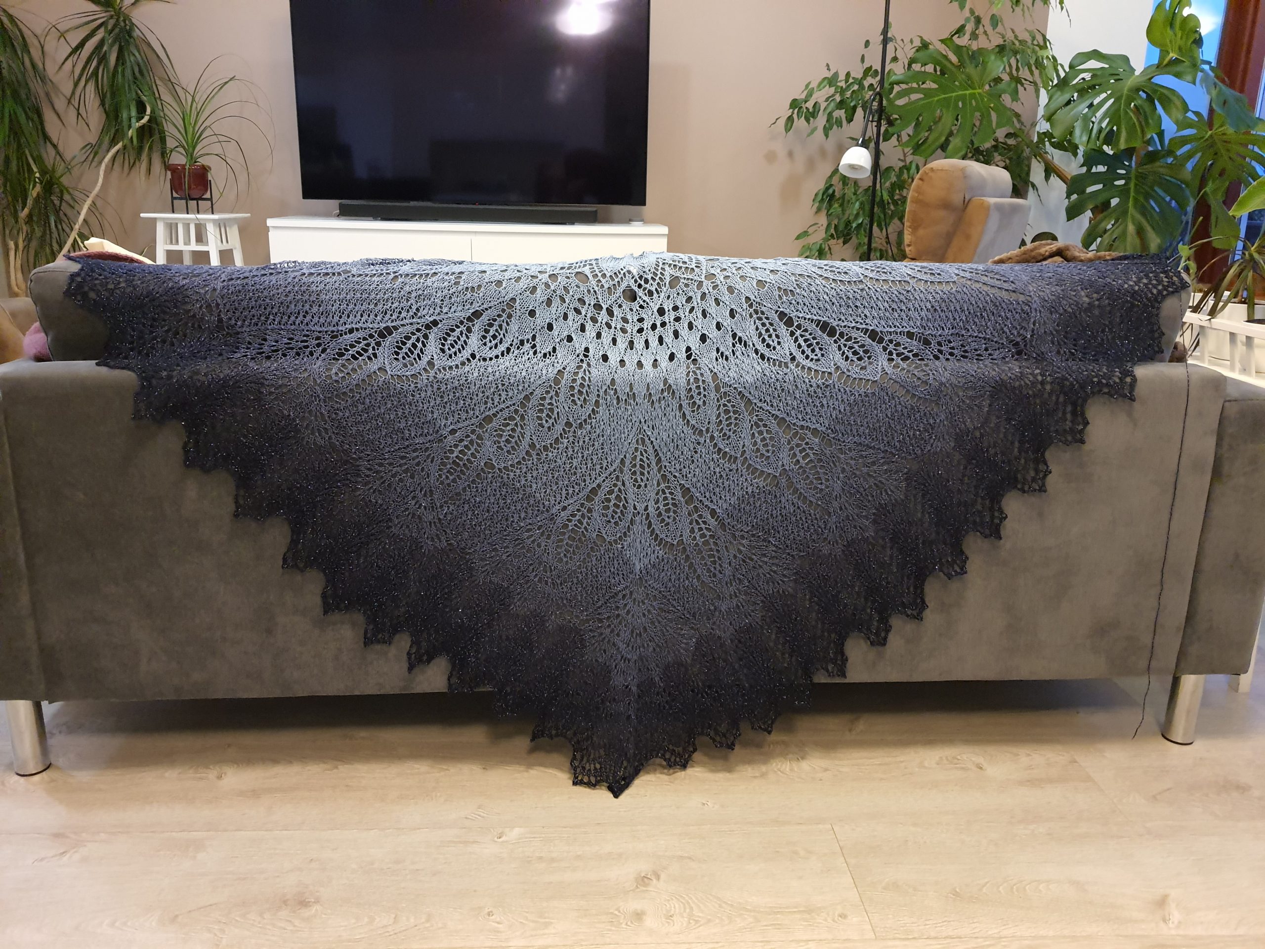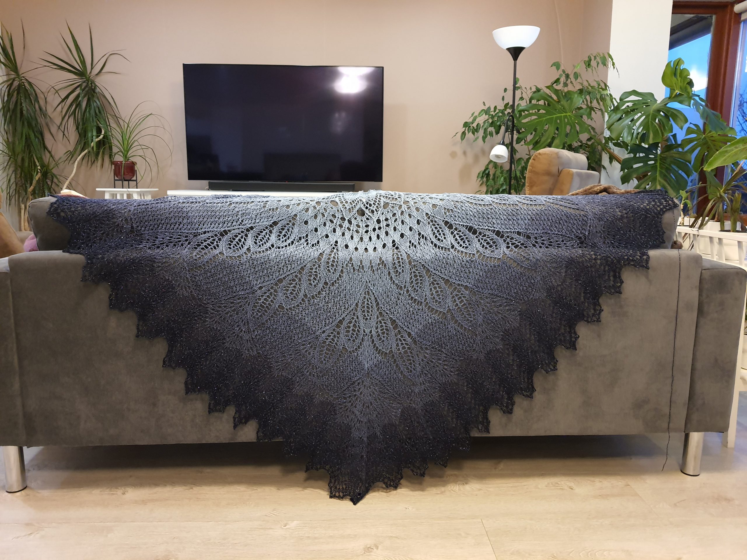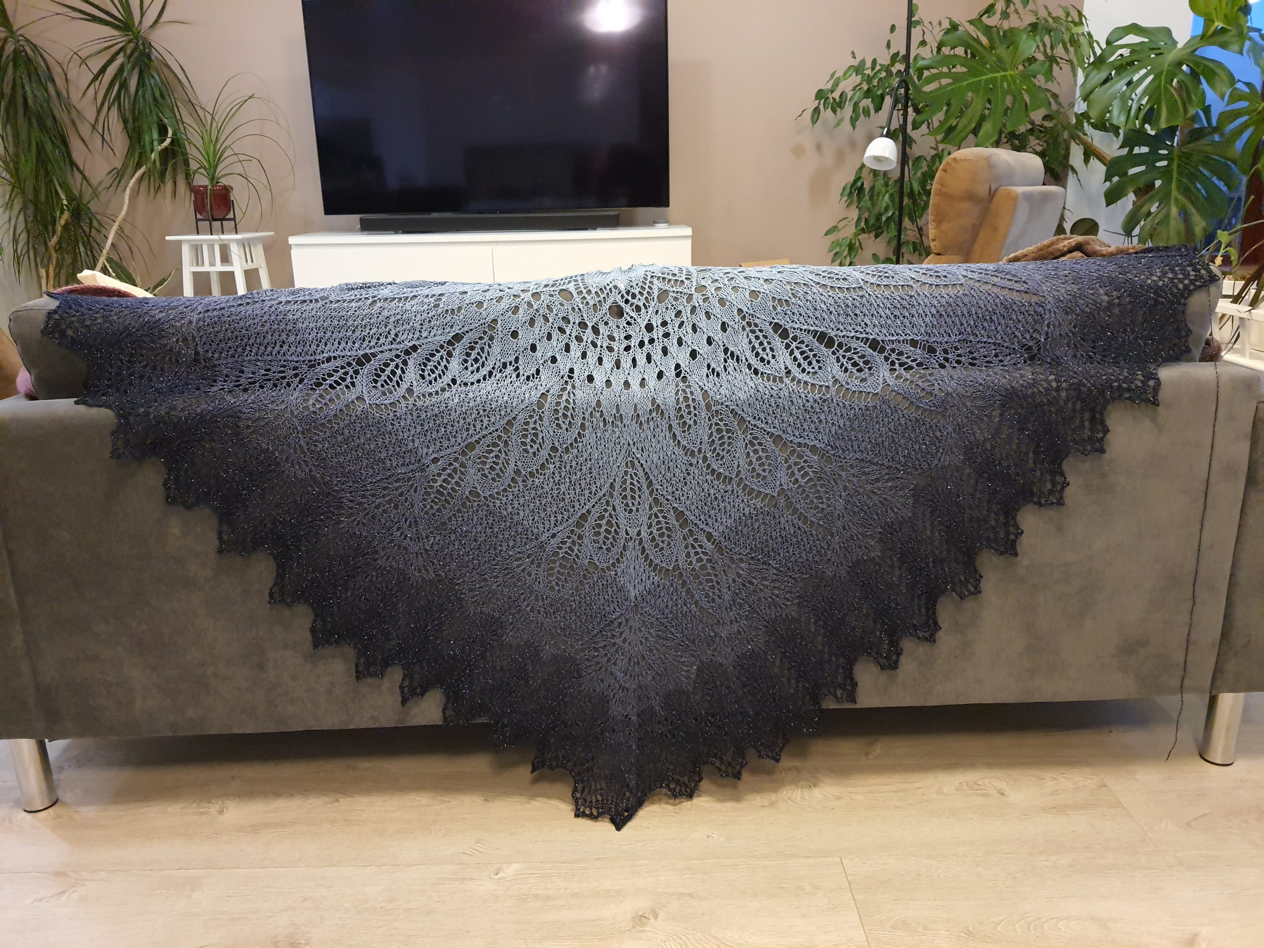 Prjónað úr bómullargarni með glimmer þræði. (96% bómull, 4%polyester).